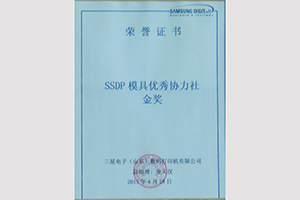 Qingdao Sankyo Electronics Components won the gold medal of SSDP Mould Excellent Cooperation Agency by Samsung Electronics (Shandong) Digital Printer Co., Ltd.